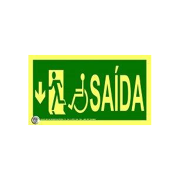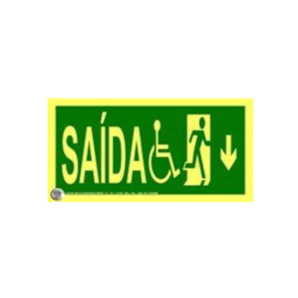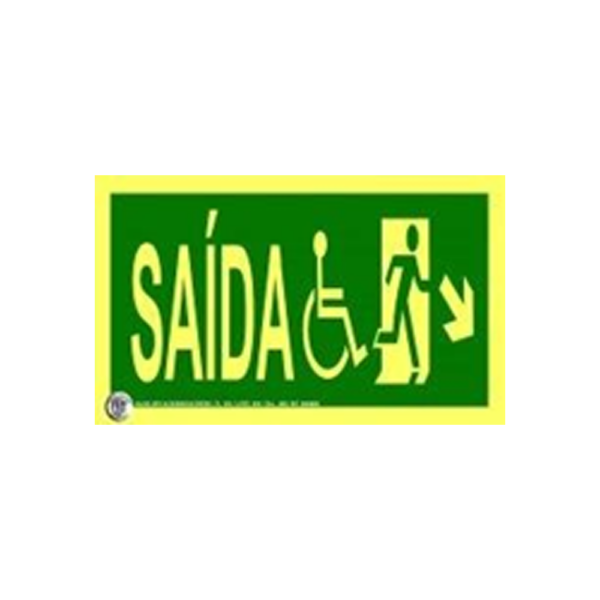 Sinalização fotoluminescente Saída à Abaixo Cadeirantes