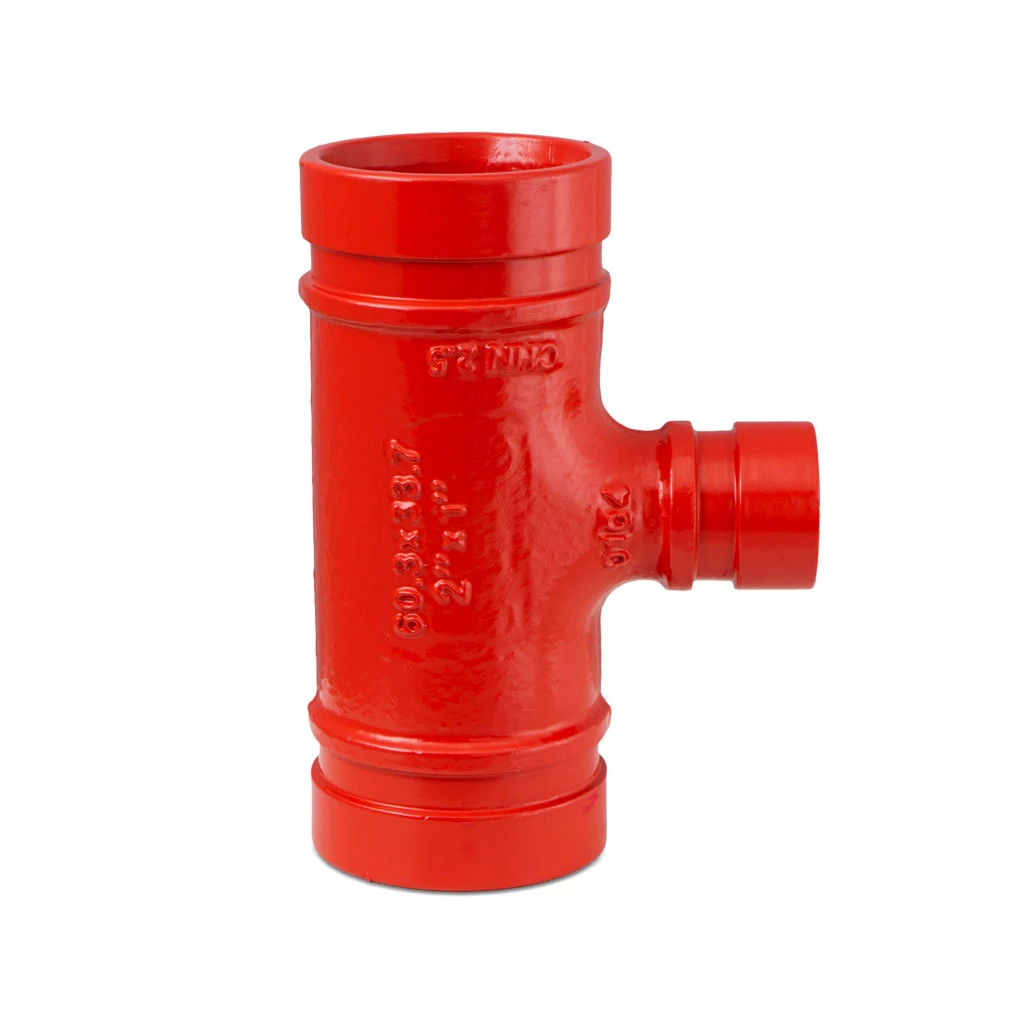 Tee redutor com extremidades ranhuradas e fundido em ferro dúctil
