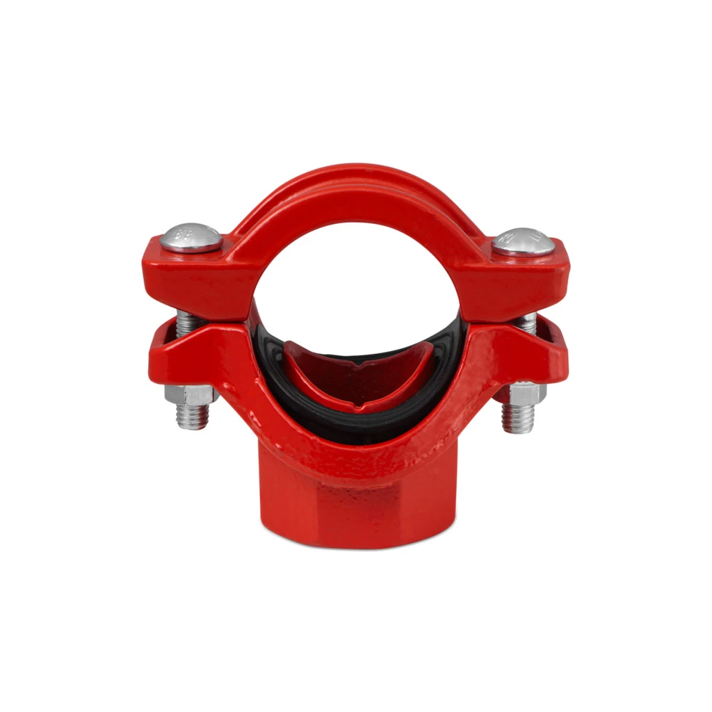 Tee mecânico com extremidade de saída rosqueada, que fornece uma saída de derivação rápida e fácil ao longo da tubulação.
